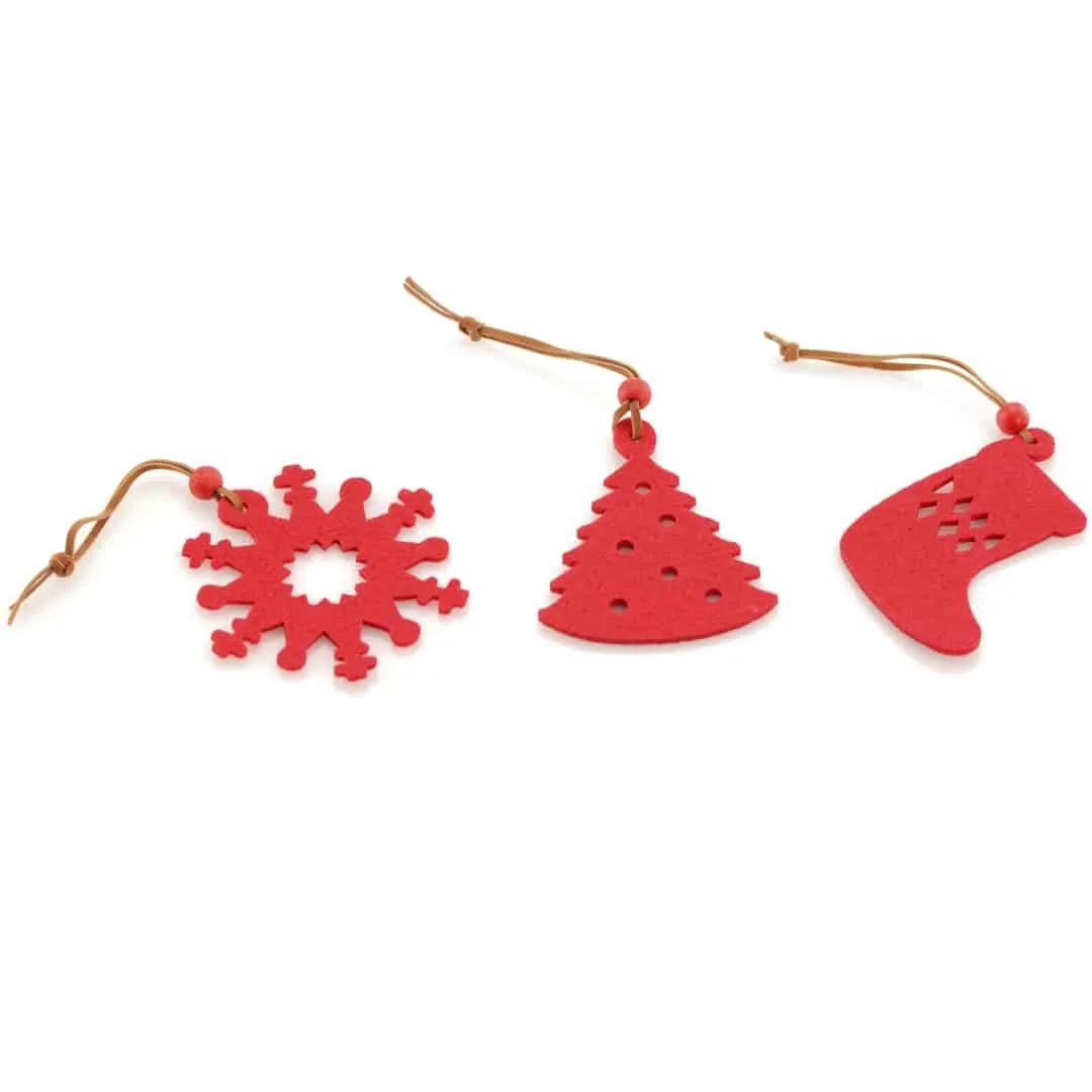 Filz-Anhänger mit ausgestanzten Weihnachtsmotiven und Kordelaufhängung im Set ein schöner Dekoartikel für Ihr Weihnachten