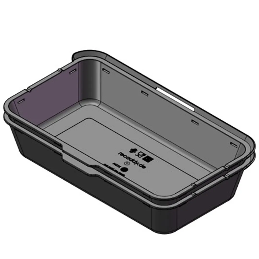 BURGERBOX L made by trikora, Dde neuartige recaddybesticht durch Ihre einfache und perfekt ausgeklügelte Handhabung. Die Burgerbox gibt es in 2 Grössen,  die abgebildete Variante dient zur Aufnahme von Burgern, Pasta, Currywurst, Salat oder ähnlichen Lebensmitteln und zusätzlichen Beilagen wie zum Beispiel Pommes, Kartoffeln. Unsere recaddy BURGERBOX  L besteht aus zwei genau gleichen Teilen ! Warum 2-teilig!?  Wir haben festgestellt, dass bei herkömmlichen Klappboxen für Burger, durch das verjüngte Material am „Scharnier“ (damit die Box klappbar ist) eine Sollbruchstelle entsteht. Unsere Burgerbox besteht aus zwei genau gleichen Teilen und wird durch einen speziellen Schiebe-Klick-Verschluss zu einer kompletten Box, so können Sie Boden/Boden oder Deckel/Boden…. immer alles miteinander verbinden.           2 gleiche Teile = 1 Box