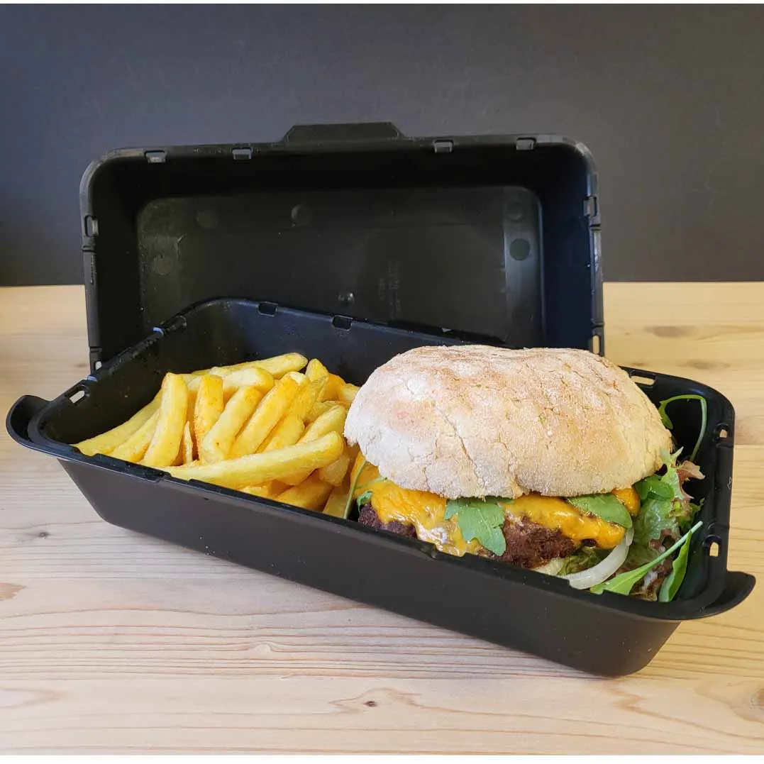 Die BURGERBOX von recaddy ist die perfekte und bereits von Burgerrestaurants getestete Antwort auf nachhaltige Take-Away -Verpackungen mit Mehrwert durch Mehrweg.