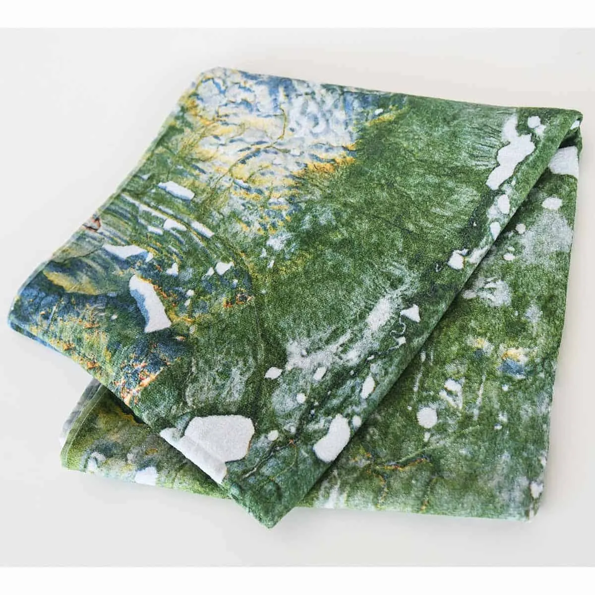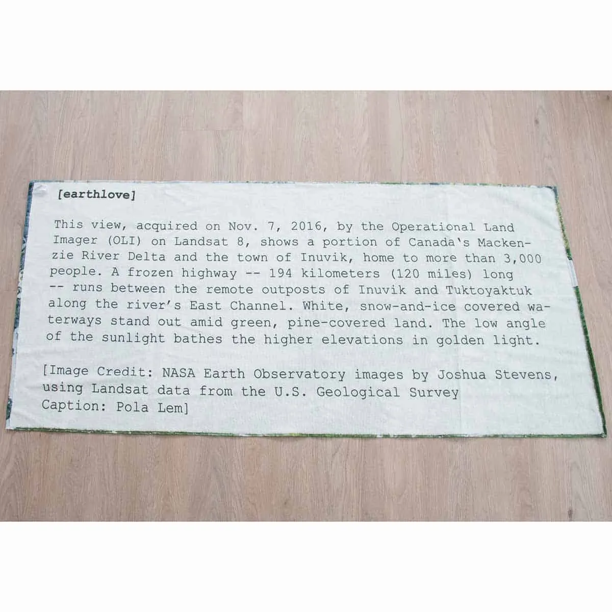 Handtuch beidseitig bedruckt für Earthlove mit NASA-Daten. Dieses tolle Duschtuch ist ist beidseitig bedruckt ein toller Werbeträger.