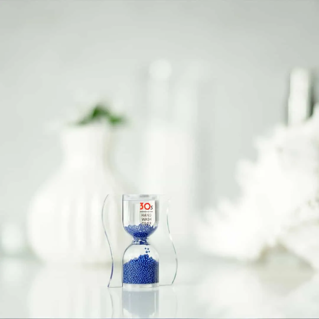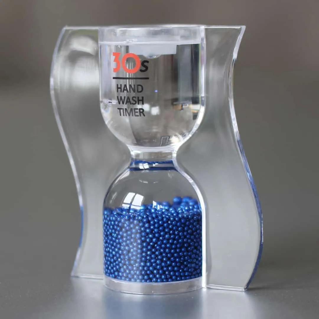 Handwaschtimer – Sanduhr mit metallic farbenen Glaskügelchen. Nehmen Sie sich die richtige Zeit zum Händewaschen mit dem Handwaschtimer. Eine Sanduhr misst die Zeit die Sie für richtiges Händewaschen benötigen – 30 Sekunden Händewaschen.