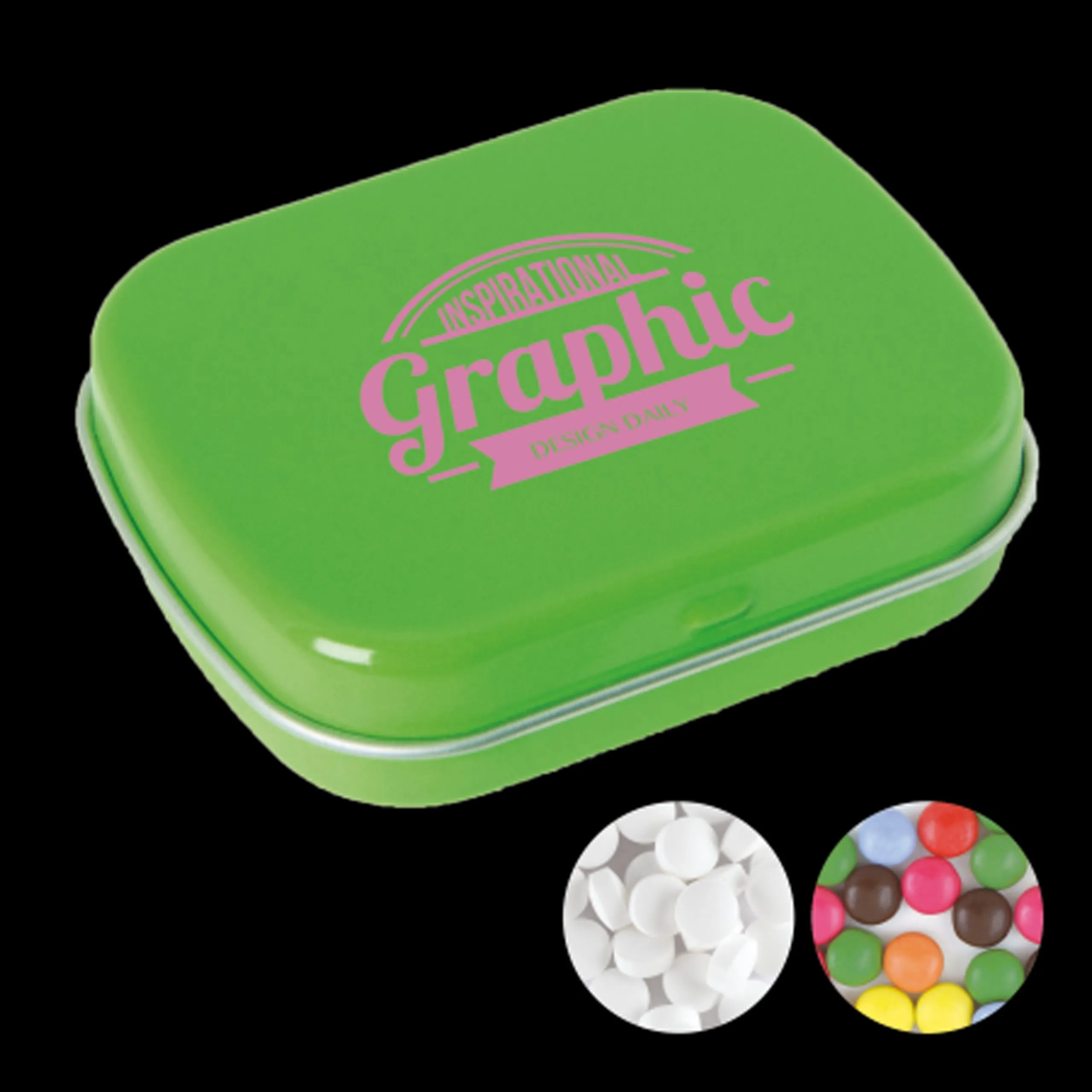 Minties – Minzbonbons in der Blechdose mit Scharnier. Verschenken Sie pure Frische mit den Minties in der wiederverwendbaren Scharnierblechdose. Verwöhnen Sie Ihre Kunden mit dem variablen Inhalt unserer Blechdosen ob Minties, Schokolade, Jelly Beans, Fruchtherzen, Schokoperlen in Gold oder Knusperschokolade, glitzernde Milchschokolade oder Sommerkonfetti oder Haribo