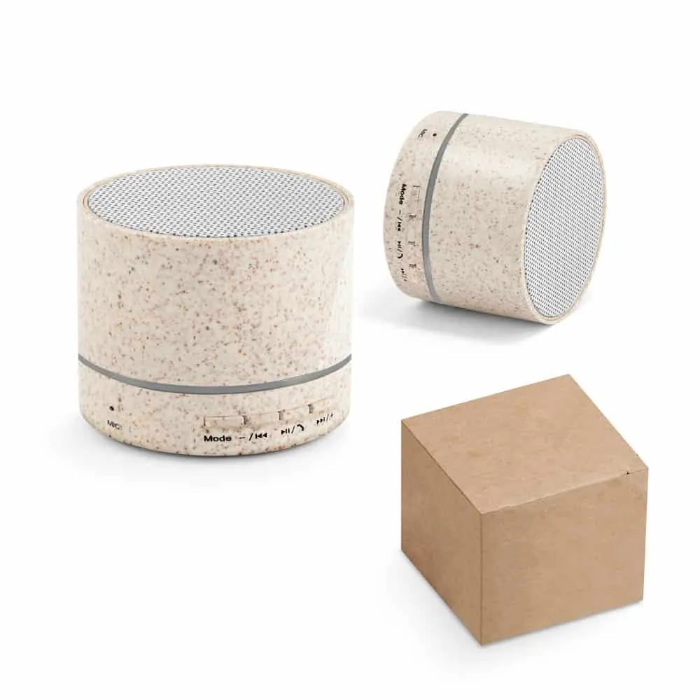 Bluetooth Lautsprecher aus Weizenstroh mit Mikrofon. Nachhaltiger Bluetooth Lautsprecher mit Weizenstroh. Der optimale Begleiter nicht nur im  Sommer.