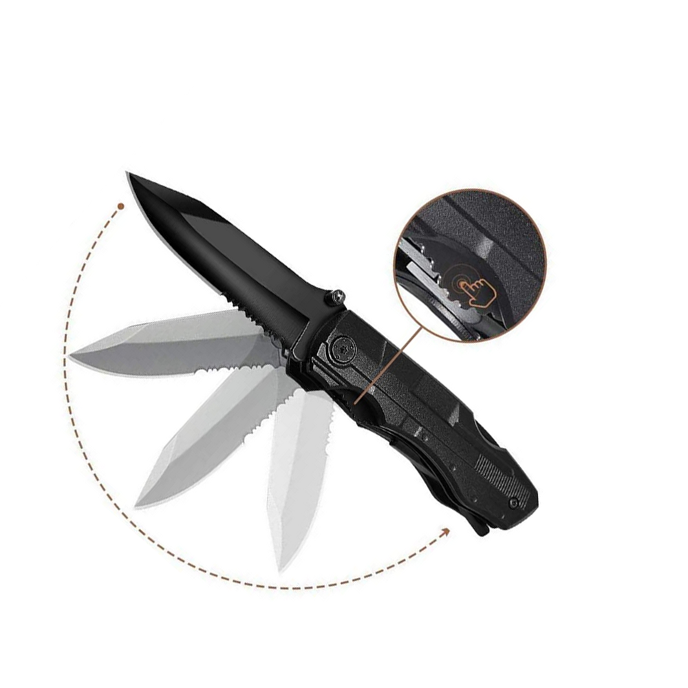 Das MULTIFUNKTIONSMESSER ist nicht nur ein Werkzeug, sondern ein echter Lebensretter. Hergestellt aus hochwertigem Edelstahl, bietet es nicht nur Langlebigkeit, sondern auch Sicherheit. Die Klinge schließt sich nicht während des Gebrauchs, was dir die Sicherheit gibt, die du benötigst, um deine Aufgaben effizient zu erledigen. Und wenn du es schließen möchtest, genügt ein einfacher Druck auf den speziellen Verriegelungsmechanismus. Egal, ob du ein Kabel durchtrennen, eine Flasche öffnen oder einen Schraubenzieher benutzen musst, dieses Multifunktionswerkzeug macht alles mit Leichtigkeit und Stil!